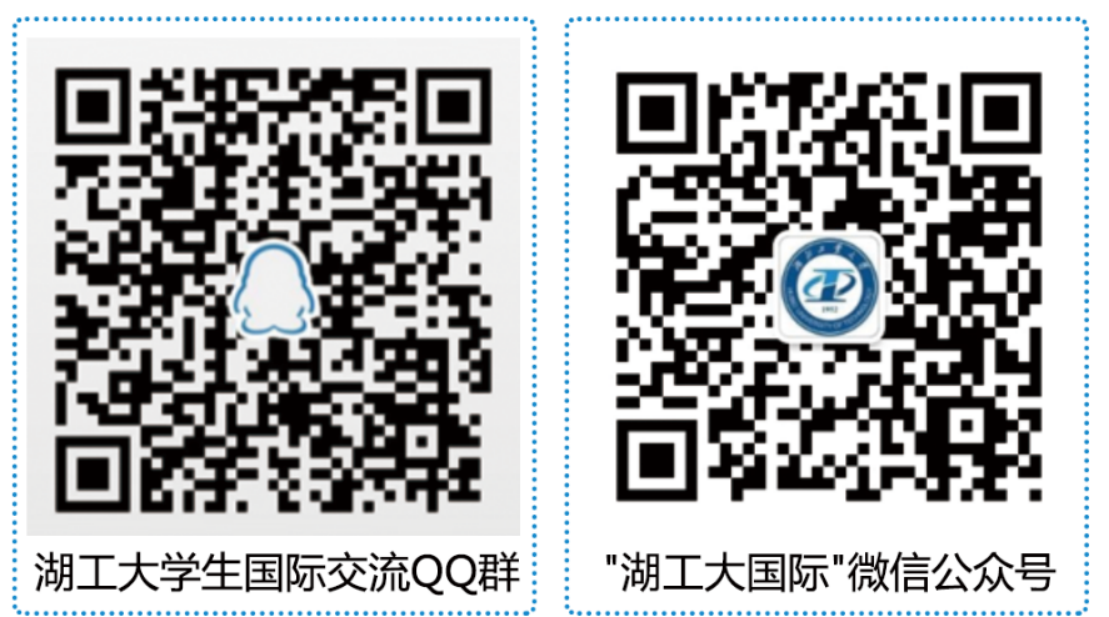 请加入“湖工大学生出国交流群”QQ群 125865363,关注微信公众号“湖工大国际”,关注相关通知。