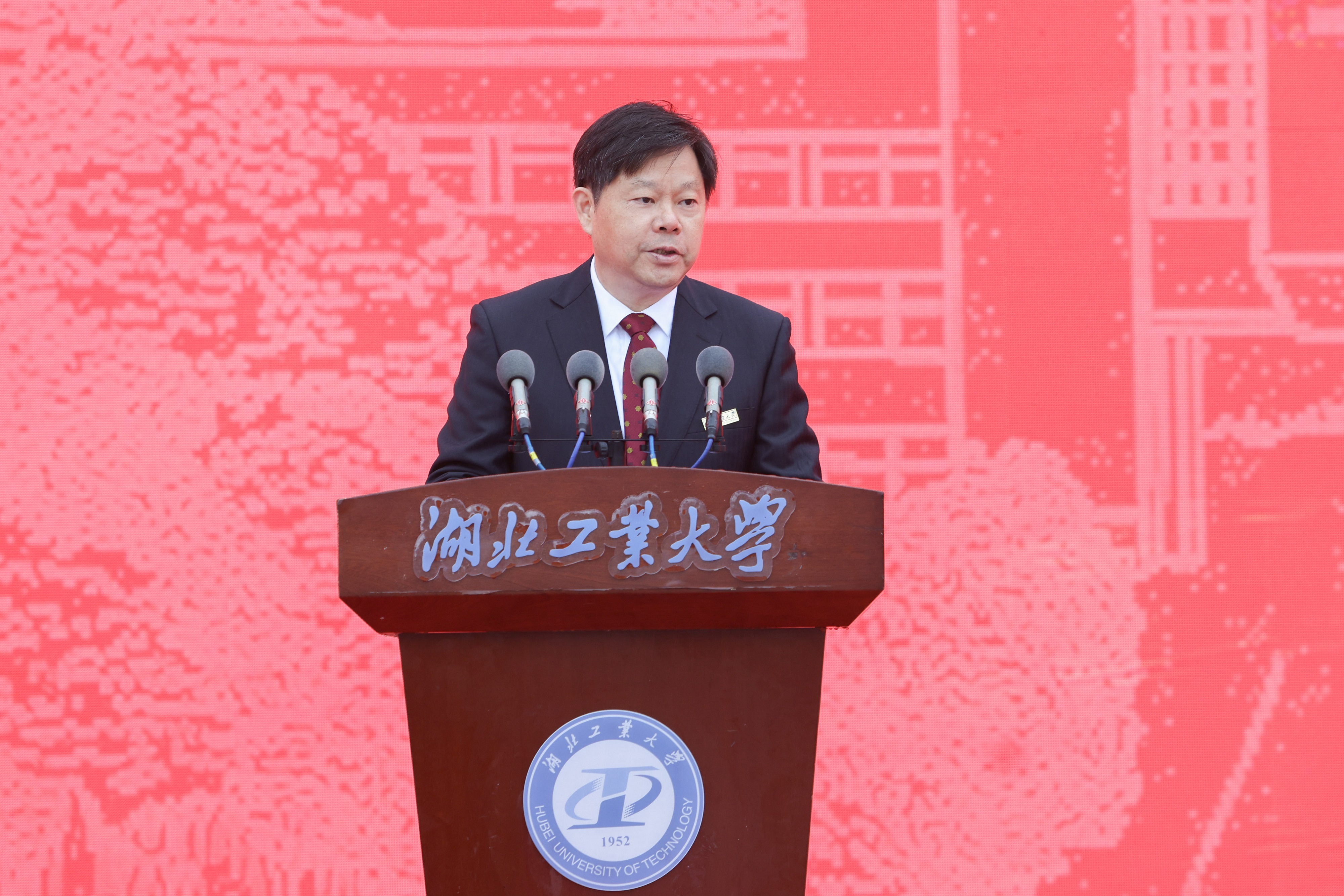 中国工程院院士、江南大学校长陈卫为大会致辞,向湖北工业大学广大师生致以热烈的祝贺和诚挚的问候。他表示,历经七十载风云际会,赓续数代人奋进乐章,湖北工业大学培养了一大批具有国际视野、绿色理念、创新创业及实践能力突出的高素质应用型人才,为国家建设、社会进步和教育发展作出了卓越贡献,并期待两校能跨越时空继续深化合作,共担教育使命、同逐一流梦想。