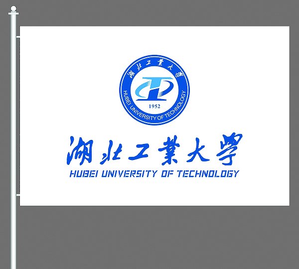 湖北工业大学校徽含义学校徽志为圆形。环形上方为毛体中文校名,下方为英文校名,中间配上下对称的黄鹤图形组成的“工”字和左右对称的环形。图案中H形为湖北拼音的开头字母,T形为英文TECHNOLOGY的开头字母;黄鹤寓意着学校的地域特点,两只黄鹤上下的组合形成一个“工”字,黄鹤腾飞寓意着学校立足湖北、服务工业的办学定位,彰显着学校以工科为主的学科特色;周围的彩带寓意着学校发展历史沿革、奋斗轨迹,持续发展、科学发展概念,走向世界、走向未来美好愿景;环形下方的数字1952,标注了学校建校时间。整体上似书卷的形态,反映学校厚德博学、求实创新的校训,突出“以人为 本”的办学思想。蓝色是永恒的象征,具有工科特色,象征学校开拓进取,有着无限的发展空间。湖北工业大学校旗为白色长方形旗帜(长与高之比为1.5:1,旗面尺寸分4种,分别为288厘 米×192厘米、240厘 米×160厘米、192厘 米×128厘米、144厘 米×96厘米),中央印有蓝色毛体校名,校名上方配以校徽。白色校 旗庄严大方,校徽、校名毛体字在旗面上处于居中位置,整体组合非常醒目,视觉冲击力强,能很好的搭配各种环境下的使用。