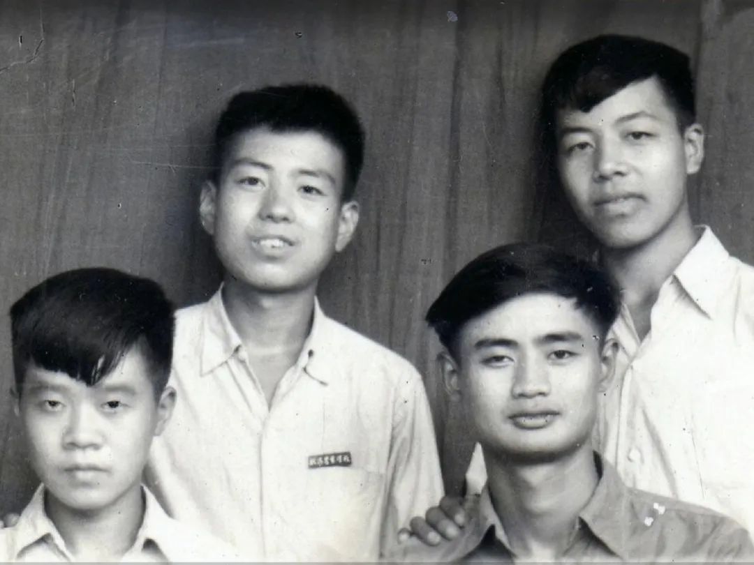 图/宋运淳与同学在农校时的合照,其胸前佩戴校徽。从左到右依次为何文才、宋运淳、戈学云、林春瑞