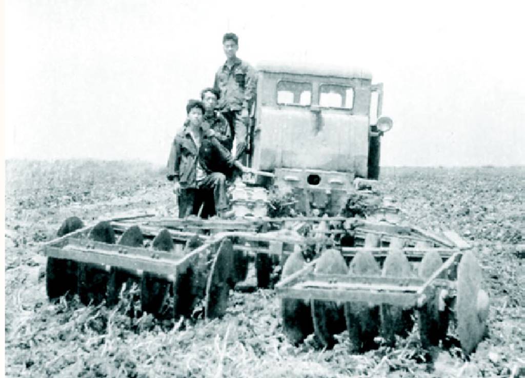 一开始,我们是不能上拖拉机的,只能当农具手。当时的东方红54拖拉机,后面有一个五铧犁,需要农具手把握犁前后左右深浅一致。我们不停地调整着五铧犁的两个铁盘子,手都起泡了。