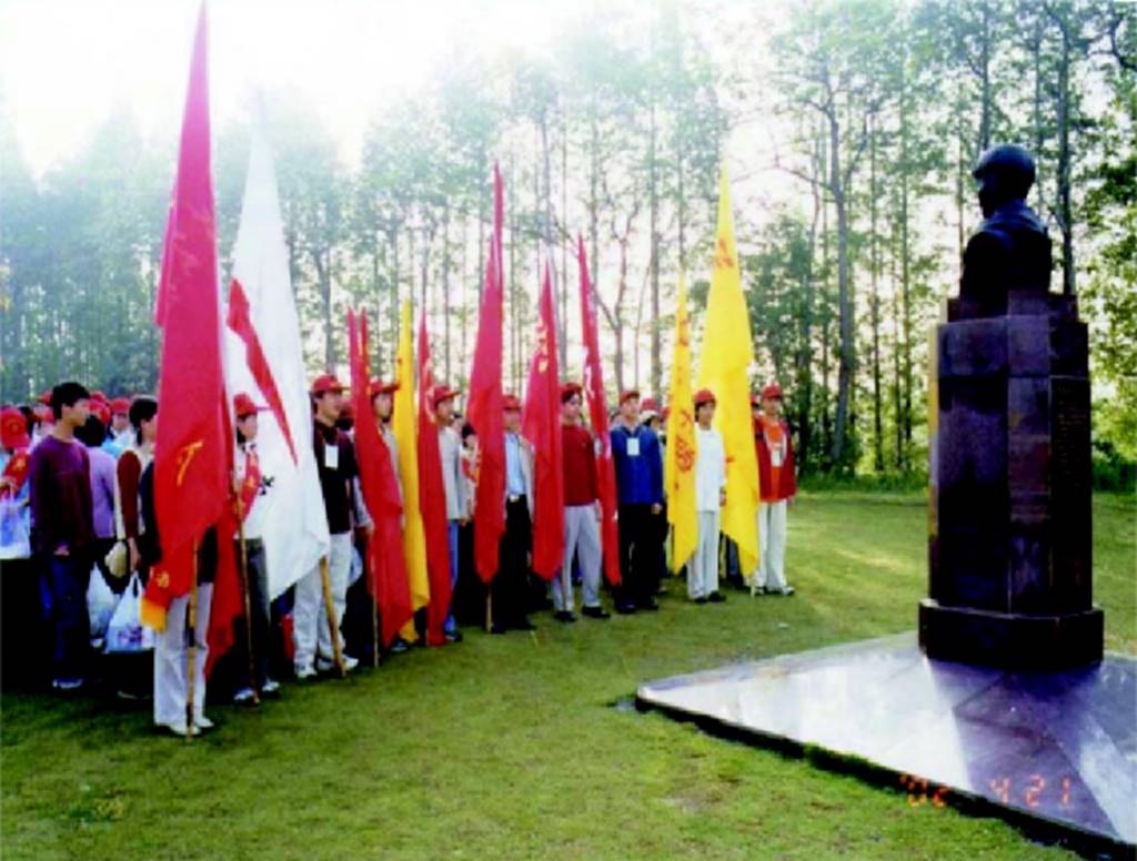 青年志愿者在萧栋栋烈士塑像前宣誓