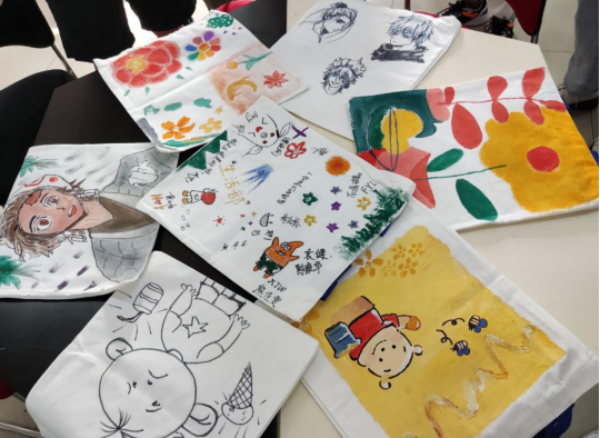 不少同学发挥想象力,利用剪纸和涂料在帆布包上描绘出国旗和校庆标识。通过手工作品表达自己对祖国的热爱和对学校70周年校庆的祝福。