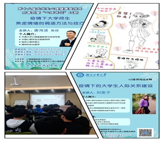 今年以“迎校庆,健心灵”为主题的心理健康教育宣传月活动包括心理专题讲座、心理游园会、“我画我心”心理漫画创意大赛等,全校有近3000名在校师生参与。截至今年学校已经开展了十八届心理健康教育宣传月活动,前后陆续开展了心理剧、心理知识辩论赛、主题团辅、户外素质拓展等特色心理活动,通过多种形式的宣传教育活动,向在校师生科普心理健康知识,搭建学校与学生、教师与学生、学生与学生之间心灵沟通的桥梁。今后,湖北工业大学心理健康教育与咨询中心还将继续探索大学生心理健康教育实践活动的新载体,新手段,不断完善心理健康教育辅导体系,广泛开展心理健康宣传活动,积极营造和谐健康的校园文化氛围。