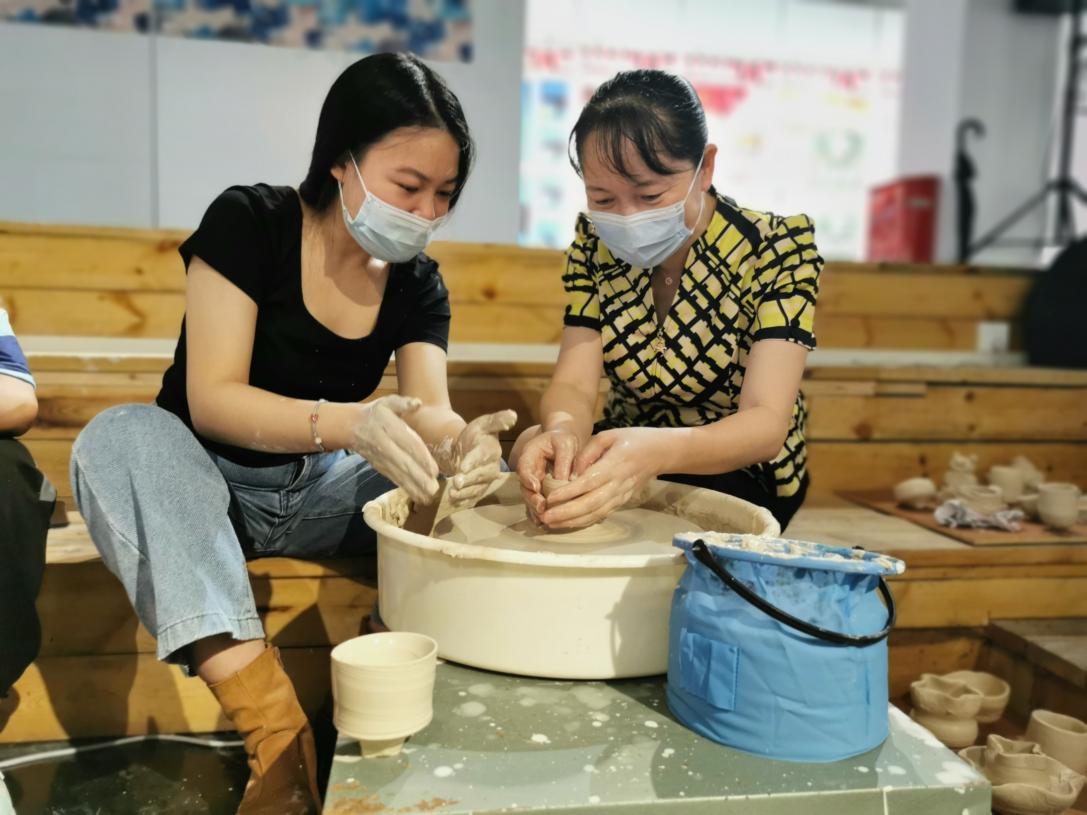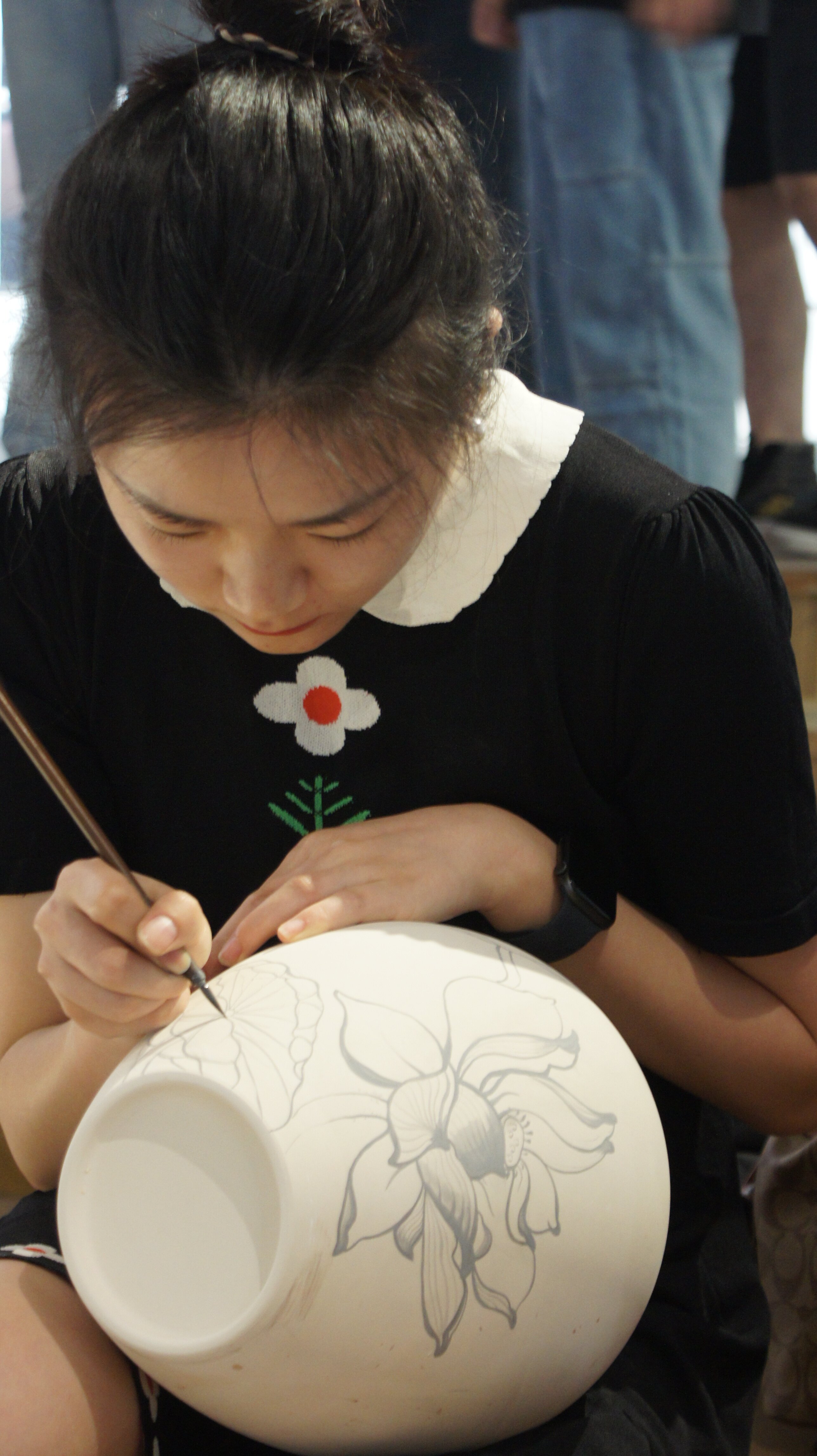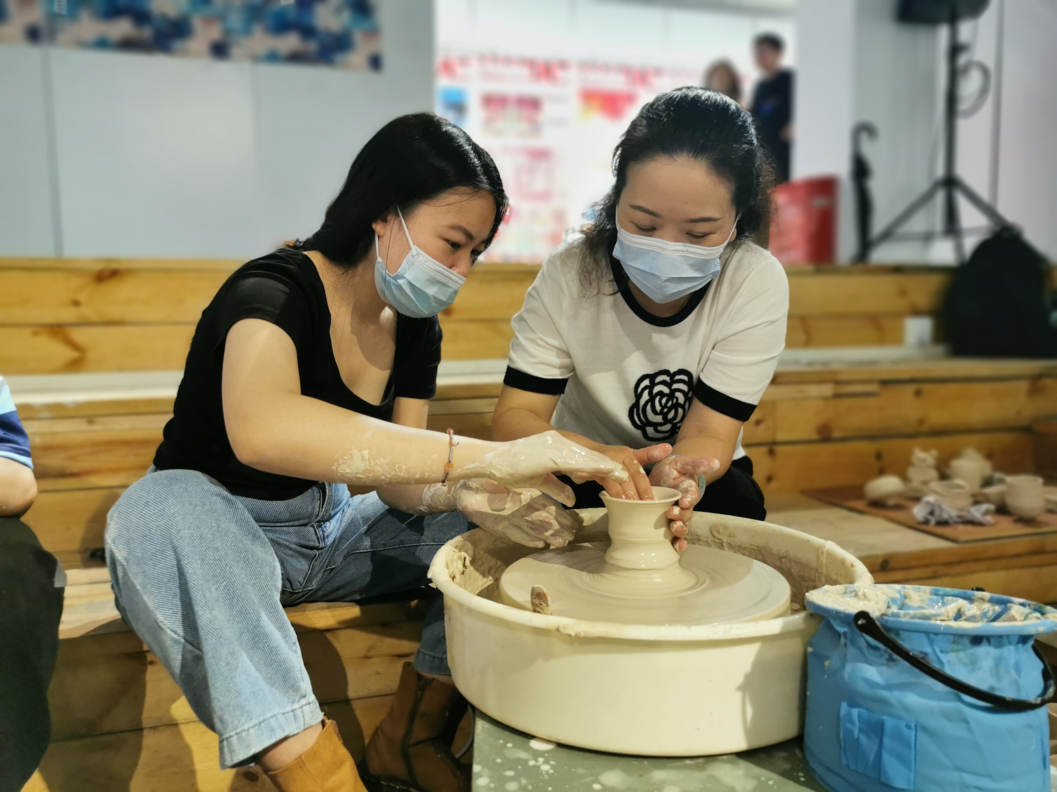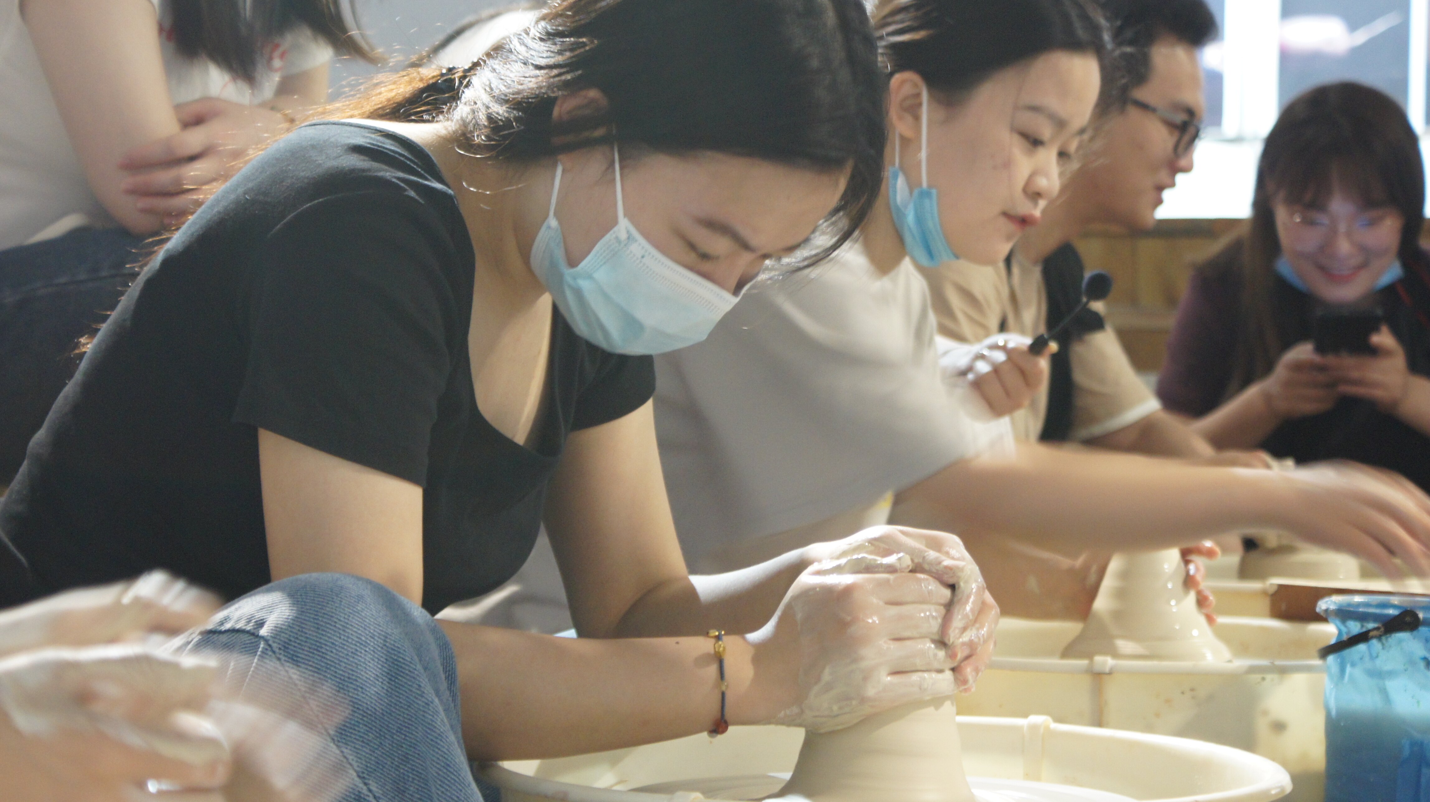 “拉坯、修坯、素烧、上釉、装窑、焙烧,在师兄师姐的讲解下,我基本了解了陶艺成型的原理,从泥土到精美的工艺品,整个过程十分奇妙!”梅沁莹说。